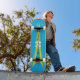 HAMbyWhiteGlove designed skateboard shown in blue and yellow; blue colour can be changed to any colour at the personalise option. Add your initial and name to the text box. Includes our coin shaped shortened logo in the coloured area. HAMbWG