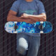 This skateboard deck has a natural wood upper finish, while the underside has a blue rendering of an original photo of raindrops on an automobile windshield. This item is the deck only and must be fit with your wheels and hardware, or they can be ordered at the time of purchase.