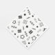 Paper napkins featuring skateboarding designs and elements! Each napkin is adorned with a captivating array of skateboard motifs, including iconic skateboard imagery such as skateboard decks, trucks, and wheels, complemented by retro-inspired elements like lightning bolts and stars, all in a striking black and white design.