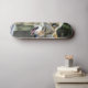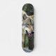 The skateboard has a specific design, representing a predatory gray wolf. On the surface of the skateboard, you can see the visual image of this wolf, who's looking at his environment. The wolf's depiction suggests a shocking and detailed image, intended to convey the image of a majestic and captivating predator. This design incorporates details such as the face expression of the wolf, its posture and any other element that highlights the wild and ferocious nature of the animal. The combination of skateboarding with this specific design suggests a fusion of the world of skateboarding and natural aesthetics, creating a unique and striking piece.