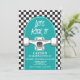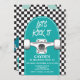 Skateboard Let's Kick It, Birthday invite with black check and blue skateboard.