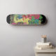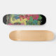 The skateboard features a visual design of mandalas on the face of a young woman. The skateboard has detailed illustrations of mandalas, which are geometric and symmetrical patterns of spiritual and artistic origin. These gowns are arranged around a young woman's face. The combination of elements, the skateboard and the design of mandalas on the face, suggests a fusion of art and sport, giving rise to a unique and creative piece.