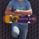 The skateboard presents the design of an acoustic guitar, offering a creative fusion between the functionality of urban sport and musical aesthetics. The design contains the curved strokes and elegant lines of every guitar, while the colors and patterns add an artistic and vibrant touch. This skateboard not only provides an agile means of transport, but also serves as an artistic expression, capturing the melodic and creative essence of music in its design.