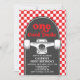 Skateboard One Cool Dude, 1st Birthday invite with red check and skateboard.