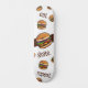 Burger kawaii pattern on white background with text eat. skate. repeat and brown banner