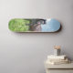 The skateboard has a specific design, representing the image of a gray horse with great power. This horse is located in an environment that evokes the feeling of a countryside. The skateboard features a detailed and striking illustration of the gray horse, which is perceived as majestic and strong. The combination of skateboarding and horse design in the field suggests a fusion of energy and freedom associated with skating activity and the wild and powerful nature symbolizing the gray horse on the field stage. Overall, the design evokes a unique visual image that merges the skating culture with the beauty and strength of nature represented by the horse.