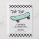 Skateboard Two Rad 2nd Birthday invite with black check and blue skateboard.