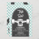 Skateboard Two Rad 2nd Birthday invite with blue check and skateboard.
