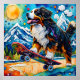 Adorable Bernese Mountain dog skateboarding with mountains in the background AI generated art