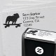 Skateboarding Bulldog silhouette self inking return address stamp. A fun Bulldog lover’s rubber stamp for quickly stamping your return address to personal and business mailings. Visit Jenn’s Doodle World for more dog breed stamps and cool Bulldog designs.