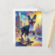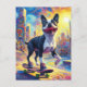 Skateboarding Colourful Surreal Boston Terrier Postcard