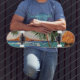 skateboarding reminds a person that they are in the tropics with a cool skateboard deck
