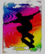 The sports action and energy of skateboarding athletes are captured in silhouettes of action figures demonstrating extreme tricks and stunts on their boards. Digital paintings and illustrations of these teens and young men include backgrounds of bright, vivid colours and splashes and bursts of light to highlight the action. They also show off in grungy and edgy street and skate park scenes where kids earn their street creds showing off their skills as skateboarders.