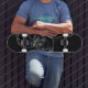 An image of Maya (the pug) sitting on a skateboard when she was a puppy (with the glowing edges filter applied to it the photo).