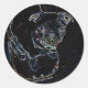 An image of Maya (the pug) sitting on a skateboard when she was a puppy (with the glowing edges filter applied to it the photo).