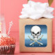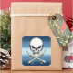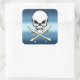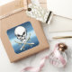 A skateboarding sticker with a skull and skateboards on a blue and white gradient background. Perfect gift for the skateboarding fanatic in your life ! Available in two sizes - 6 large stickers per sheet, or 20 small stickers on a sheet.