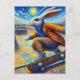 Skateboarding Surreal Colourful and Fun Rabbit Postcard
