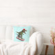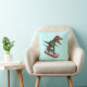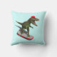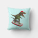 A cute and funny kids pillow with a skateboarding dinosaur!