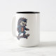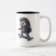 Kick-start your day with attitude! This epic two-tone mug features a badass hedgehog in a denim jacket, ripped jeans, and sneakers shredding on a skateboard. Perfect for skater gift, teen room decor, or coffee cup for anyone who loves animals with serious street cred. Dishwasher & microwave safe, 15oz size, black handle/rim. The ultimate mug for hedgehog lovers who live life on the edge!