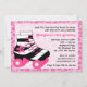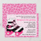 Skating birthday party invitation features pink leopard print background and zebra print roller skate.