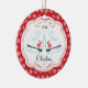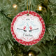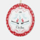Dated & personalised cute pair of ice skates Christmas Ornament set on a red & white snowflake pattern background. A Wonder Christmas gift sure to be treasured for many years to come.