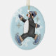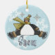 Soft snowflakes background on a double sided penguin porcelain ornament featuring penguins in ice skates! This keepsake Skating Penguin holiday ornament is a perfect gift for anyone who loves winter, penguins, and ice skating!