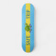 Skating turtle & calligraphy on turquoise & yellow skateboard