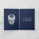A skeleton biker riding a hog and smoking a cigarette. Inside is a picture of a skull and a spooky verse. A very spooky birthday card.