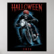 Skeleton Biker On Motorcycle Halloween 2024 Spooky Poster