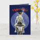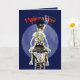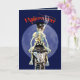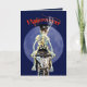 A skeleton biker riding a hog and smoking a cigarette. A very spooky card for Halloween.
