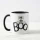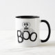 Scary Halloween tote bags, T-shirts, mugs, magnets, buttons, and more featuring a skull and hand bones holding on to text that reads "BOO"!