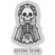 This is a cute "horror-themed" halloween sticker with an illustration of a skeleton bride with a customisable text.