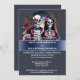 Skeleton couple burgundy dusky blue gothic wedding invitation