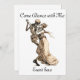 this vintage art depicts a skeleton with dress shoes dancing with a blonde lady with long braided hair wearing an old fashioned dress and a crown. Your Invited and the event appears on the front with plenty of room for your own text front and back. this makes a perfect invitation to any dance or event were dancing features like a wedding party, reception, costume ball, Halloween party, etc.