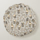 Skeleton Doodles: Vintage Textile Pattern. Round Cushion