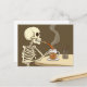 Enjoy a cup of laughs with this quirky postcard featuring a skeleton sipping coffee through a straw! Perfect for sending a light-hearted message to friends or loved ones, this design captures the fun of enjoying your favourite beverage, even in the afterlife. With its playful illustration and whimsical vibe, this postcard is ideal for any occasion—whether it’s a humourous note, Halloween greeting, or just to say hello. Brighten someone’s day with a bit of bone-chilling humour