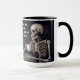 These skeletons are very optimistic. They are sitting around the table on the pirate ship facing one another. One says “It could be worse…”. The other says “yea, we could be out of coffee!” Enjoy the customisable mug. You can change the saying as well as the names on the mugs the characters are holding.