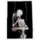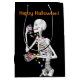 Halloween gift bag with my 3d skeleton character bingeing on Halloween candy. Front customisable text says "Happy Halloween!"