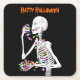 Skeleton Eating Halloween Candy Square Paper Coaster