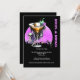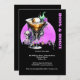 Step into a world of delightfully eerie allure with our bewitching invitation! Calling all family and friends to partake in a spine-chilling celebration, where the air is thick with the excitement of cocktails, Halloween costumes, and ghoulish revelry. Our invitation features a mesmerising design that will send a shiver down your spine, with a spooky martini glass filled with golden liquid and fantasy garnishing; a skeleton wearing floral purple roses in her bones and skeletons walking out of a graveyard that are illuminated by the light of the pink full moon. The 3D AI graphics bring this haunting scene to life, while the black background makes the design pop with an ominous presence.