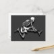 Ink drawing of a skeleton electric guitar player in a big rock leap. B/W, t-shirts, sweatshirts, prints, gifts.