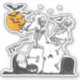 Illustration of a Skeleton Halloween party in a cemetery with bats and spider decoration at full moon