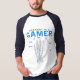 I bought the Men's Basic 3/4 Sleeve Raglan T-Shirt, White/Navy. It arrived on time for a gift and is of a great quality and fits perfectly! So cute! Zazzle has done it again! The printing was clear and filled in solidly.