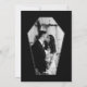 Nothing screams "I do!" like a Halloween-inspired gothic wedding. Get ready for a bone-chillingly beautiful celebration like no other with our 'Til Death Do Us Part' skeleton & floral Halloween gothic theme wedding Save the Date card. Our beautiful gothic wedding save the date features our hand-painted watercolor skeleton hand-holding a ring box, along with our decorative hand-drawn border. The reverse side features a coffin-shaped design with a personalised photo template displayed in the coffin shape. Our Halloween theme wedding will have you saying "I do" to this hauntingly romantic affair. Perfect for Halloween weddings or couples seeking a dark gothic-style wedding vibe. All illustrations are our hand-drawn original artwork. Design & artwork by Moodthology Papery
