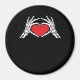 A skeleton hands design with a red heart. Romantic, gothic, and expressive.