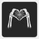 Skeleton Hands Cobweb Heart (White) Classic Square Sticker