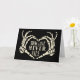 This goth wedding card is perfect for couples who prefer things to be a little spooky and creepy. This card features an illustration of skeleton hands in a heart shape framing the message TRUE LOVE NEVER DIES. The graphic and lettering are in a cream or ivory colour against a black background. The inside message in black lettering is ready for you to add your own custom greeting.