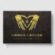 Skeleton themed Halloween wedding guestbook in black and gold foil with skeleton hands forming a heart with your monogram above your names in a golden goth font. Monogrammed goth wedding guestbook in gold and black with a skeleton heart monogram and cool fonts. Goth wedding guestbook with skeleton hands forming a heart with your initial.
