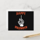 Cool and funny Halloween design featuring a skeleton hand giving the middle finger sign and the quote Happy Halloween. A perfect match for the coming Halloween party.
