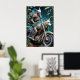 The white skeleton revved up his big fancy chopper, the roar of the engine echoing through the dark green forest. His bone napsak, adorned with delicate flowers, hung from his back as he took off down the winding trail thoug the bush. The full moon guided his way as he rode through the night, his wolf skull helmet protecting his bony head. The wind whipped through his bones as he speeds past trees and glided over hills. He was a sight to behold, this skeleton on a chopper, his flowers and bones creating an unusual contrast. But to him, it was just another night ride through the mysterious woods.Finally, after a long and arduous quest, the skeleton arrived at a place where souls converged. Surrounded by shimmering stars and an ethereal mist, he realised his purpose: to guide lost souls to the realm of peace.